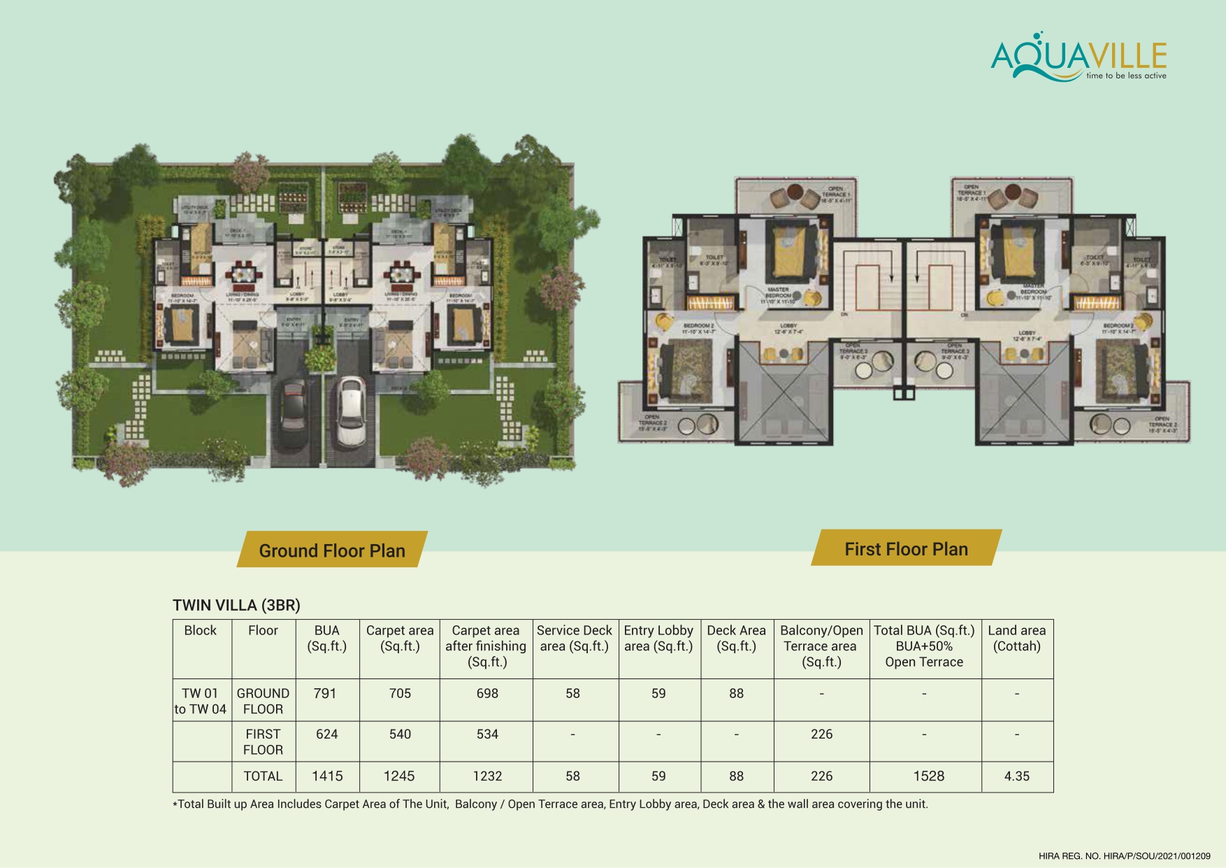 Twin villa 1700 sq ft 4.35 Kottah land, 1.24cr onwards
